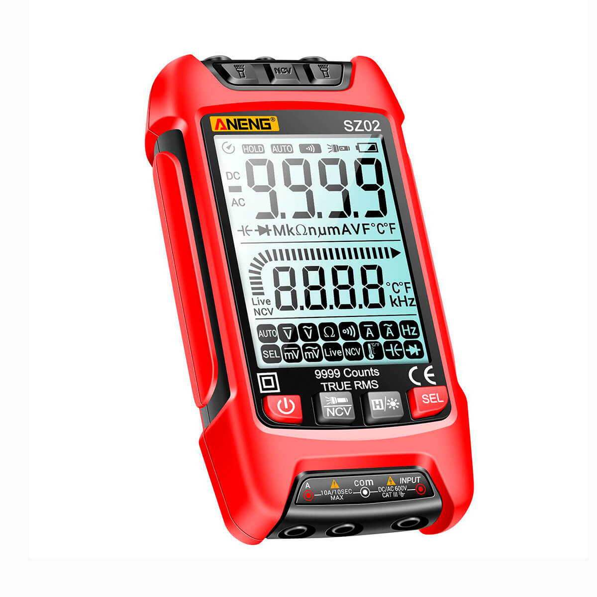 - Напряжение переменного тока600.0 мВ/9,999 в/99,99 в/999,9 В