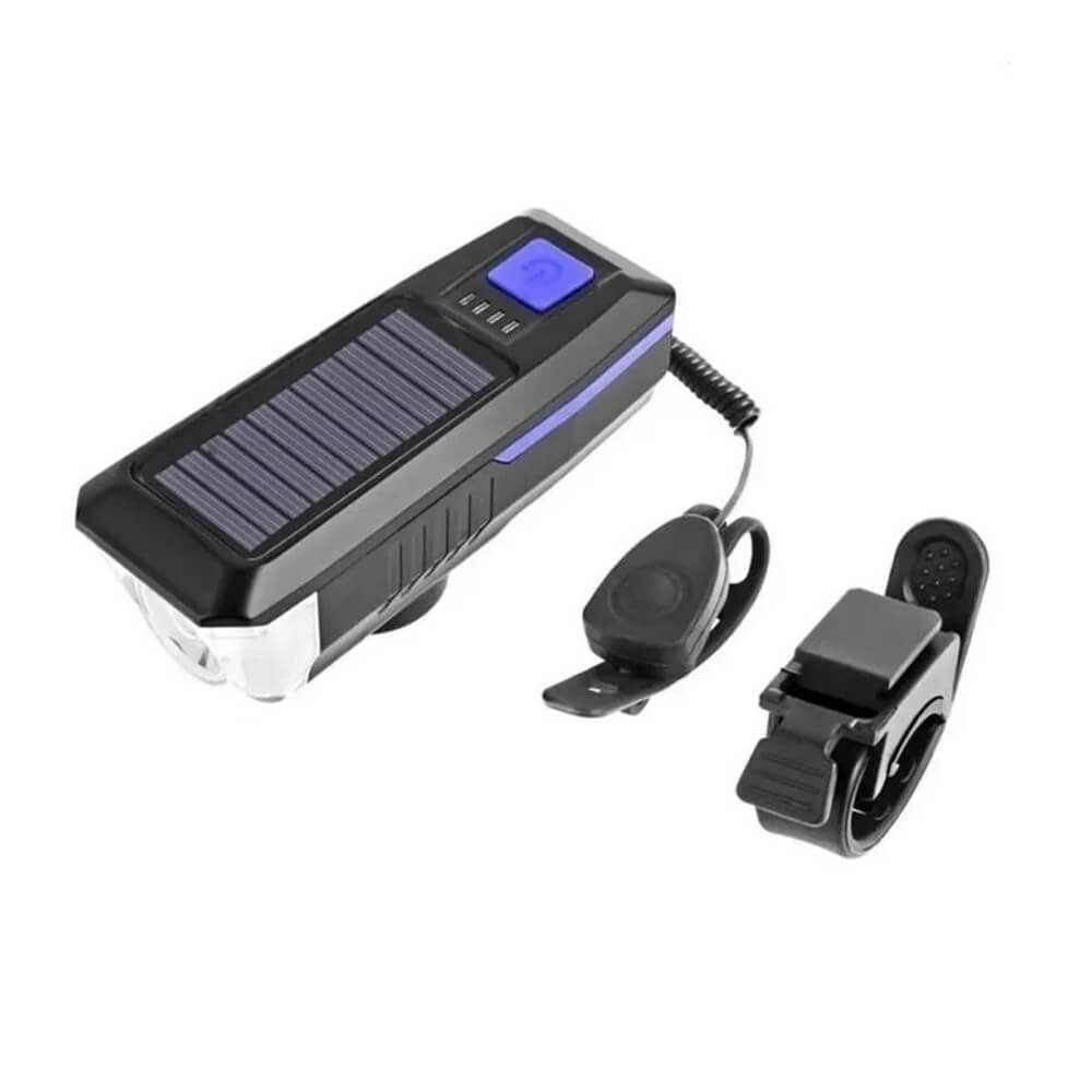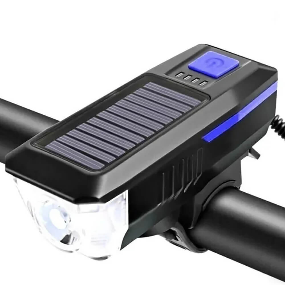 Фонарь для велосипеда Scoot, велофара с солнечной батареей обеспечивает дальность света более 200 метров. Велофара устанавливается на руль при помощи универсального крепежа. Фонарь на аккумуляторе с солнечной батареей предупреждает пешеходов и автомобилистов и обозначает велосипед на дороге в темное время суток. Велофонарь также оснащен громким гудком. На корпусе есть световая индикация с 4 шкалами, по которым можно увидеть оставшийся заряд. Передняя велофара защищена от влаги по стандарту IPX4, поэтому она не повредится даже при сильном дожде и брызгах от луж. Велофонарь поддерживает 3 рабочих режима и несколько мелодий сигнала, которые пользователь может выбрать на свой вкус. Одного заряда хватит примерно на 8 часов непрерывного использования.